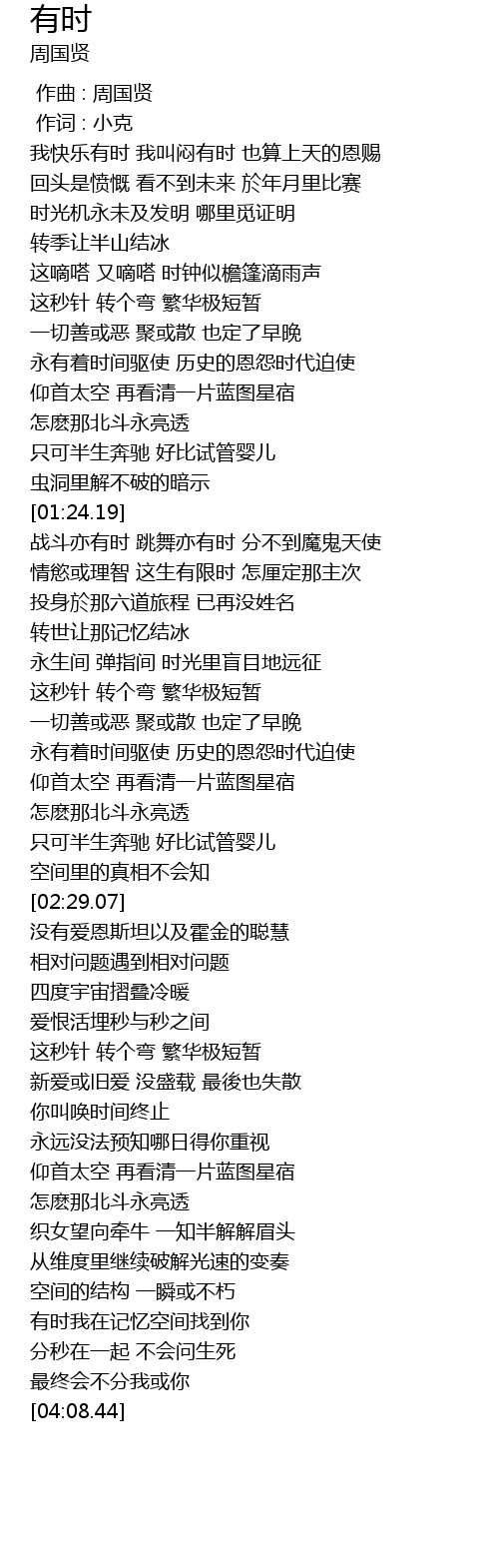 | [02:04.99] | 永有着时间驱使 历史的恩怨时代迫使 |