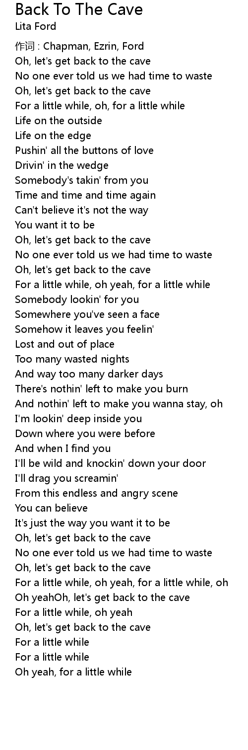 | Oh yeahOh, let' s get back to the cave | |