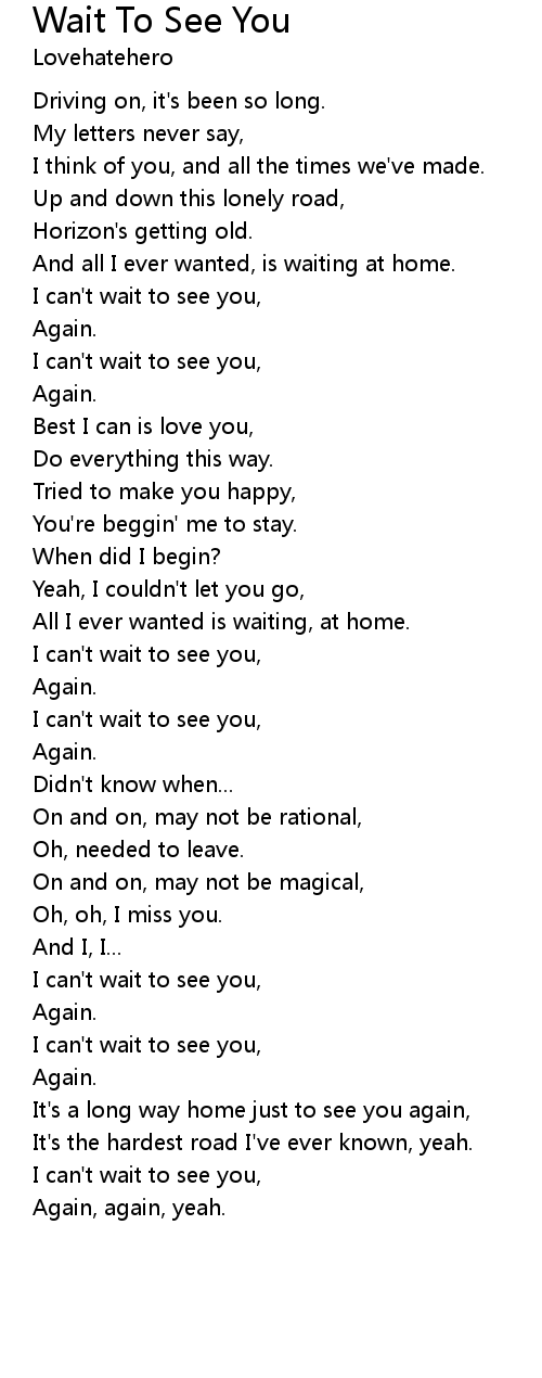 I can't wait to see you, |