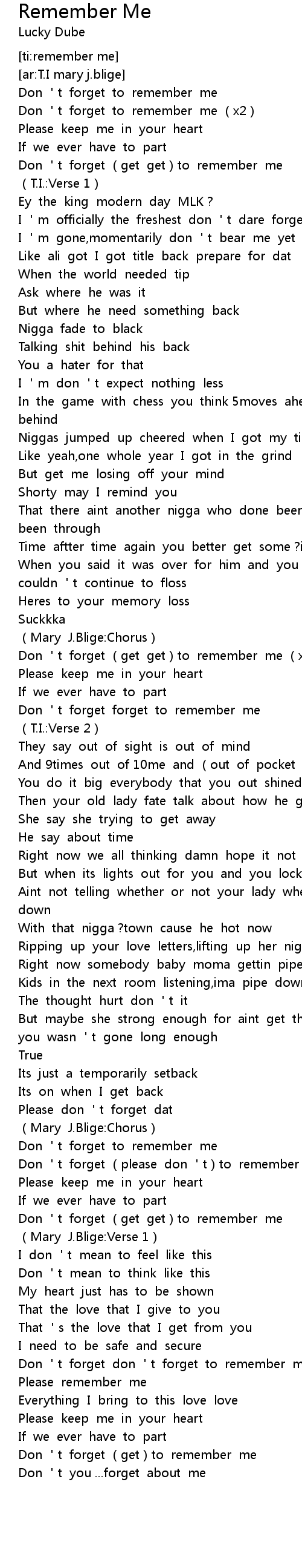 | [01:15.842] | Don t forget get get to remember me x2 |