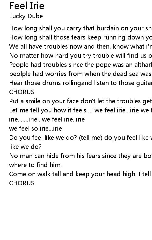 Let me tell you how it feels ... we feel irie...irie we feel irie.......irie...we feel irie..irie |