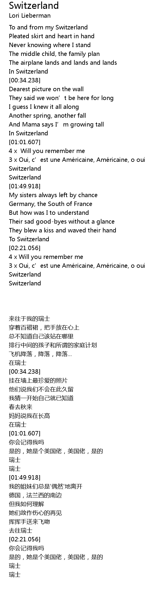 | [02:39.919] | 3 x Oui, c' est une Ame ricaine, Ame ricaine, o oui |