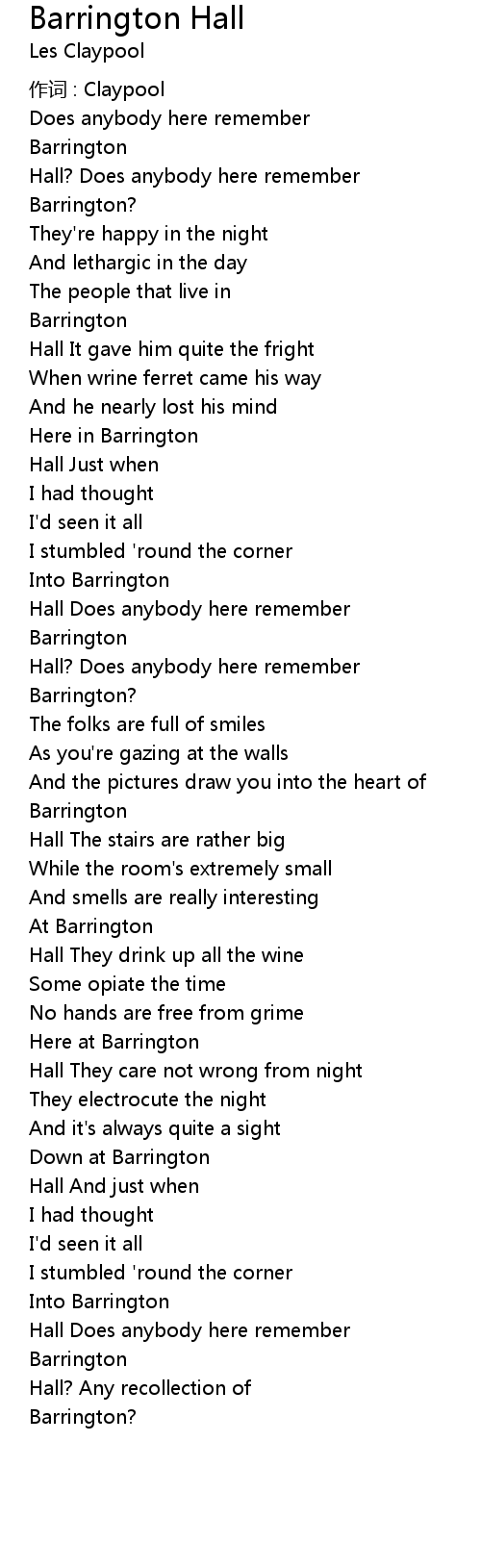 | Song | Barrington Hall |