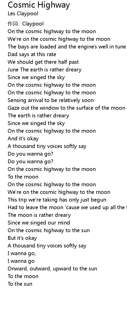 | We' re on the cosmic highway to the moon | |