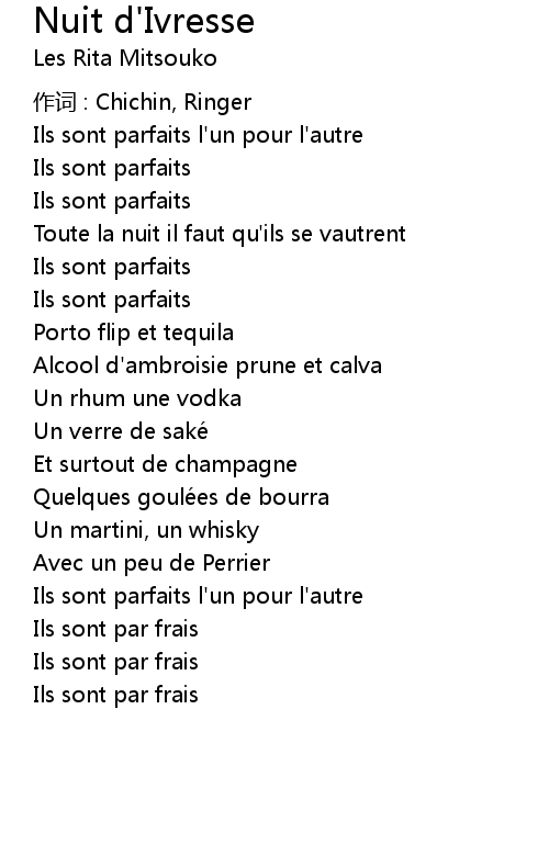 | Song | Nuit d'Ivresse |