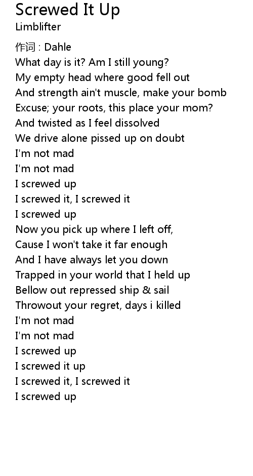 | I screwed it, I screwed it | |