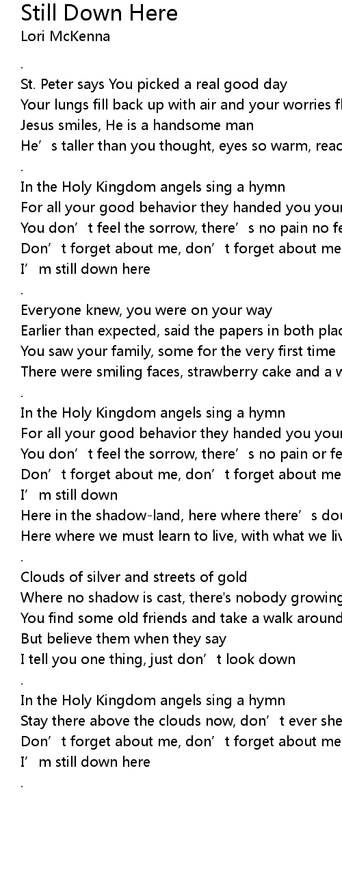 | [00:46.97] | For all your good behavior they handed you your crown and wings |