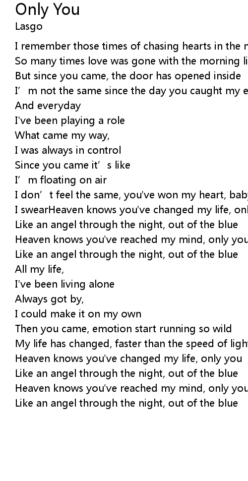 | Heaven knows you've changed my life, only you | |