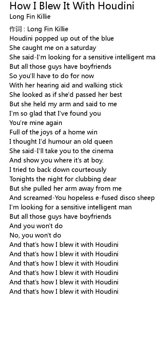 | Song | How I Blew It With Houdini |