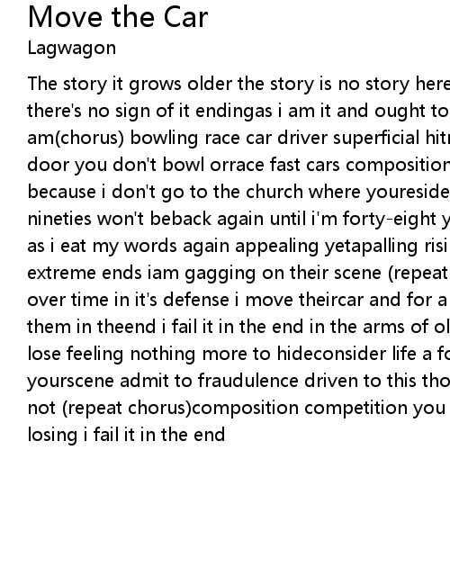 | The story it grows older the story is no story here inever knew what it is and there's no sign of it endingas i am it and ought to be they're telling me i am(chorus) bowling race car driver superficial hitmanyou're on the list at every door you don't bowl orrace fast cars composition competition you drivejust because i don't go to the church where youreside i might as well go for it the nineties won't beback again until i'm forty-eight years old i can bethe hungry as i eat my words again appealing yetapalling rising to my falling going to extreme ends iam gagging on their scene (repeat chorus) you shifti'm the driver over time in it's defense i move theircar and for a moment it makes sense i fail them in theend i fail it in the end in the arms of old age knowingonly one to lose feeling nothing more to hideconsider life a forgery as you're gagging on yourscene admit to fraudulence driven to this thoughtdeath is certain faith is not (repeat chorus)composition competition you drive competitioncompetition i'm losing i fail it in the end |