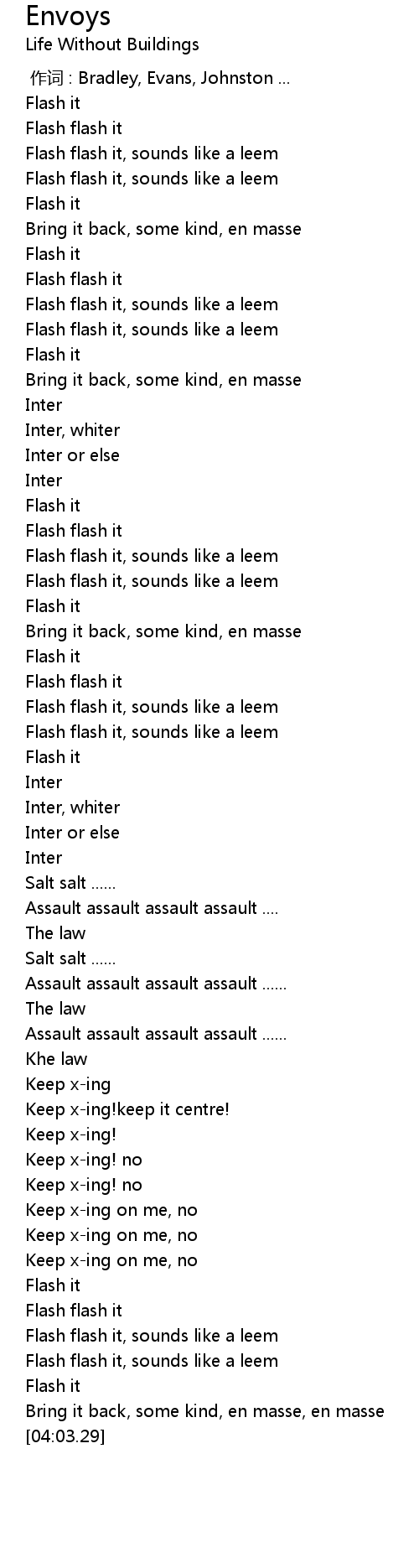 | [03:58.74] | Bring it back, some kind, en masse, en masse |