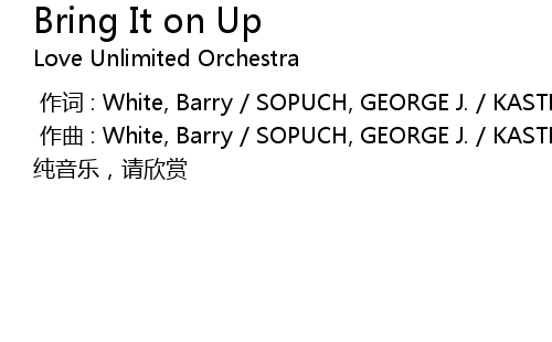 | [00:01.000] | zuo qu : White, Barry SOPUCH, GEORGE J. KASTNER, ANDREW DAVID |
