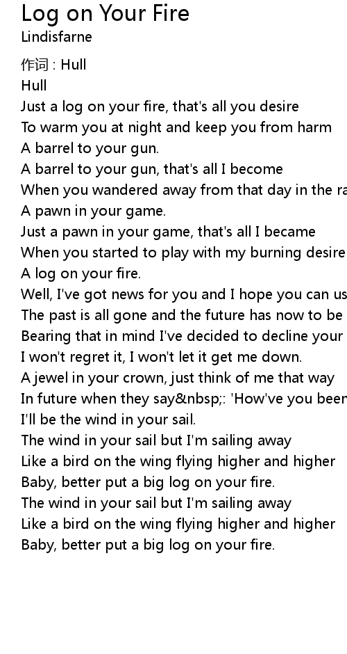 | Just a log on your fire, that' s all you desire | |