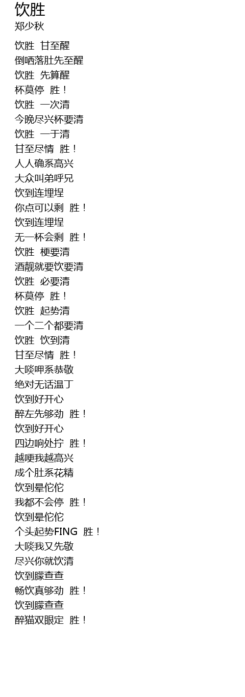| [02:09.00] | 畅饮真够劲 胜! |