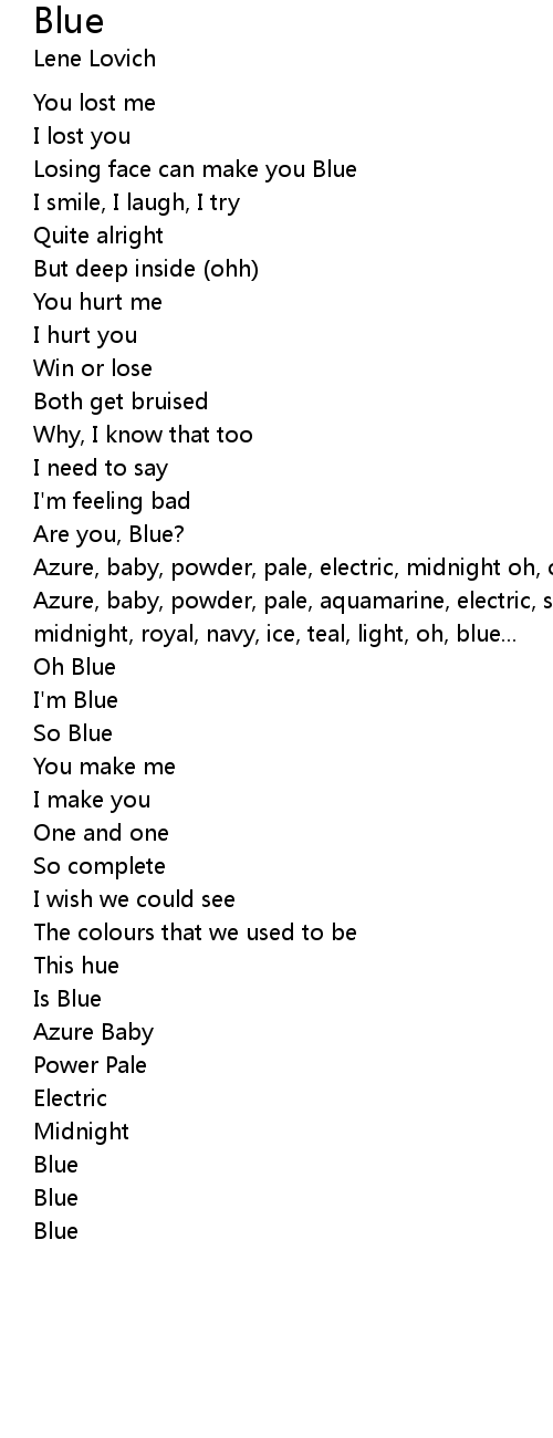 | Azure, baby, powder, pale, electric, midnight oh, oh, oh | |