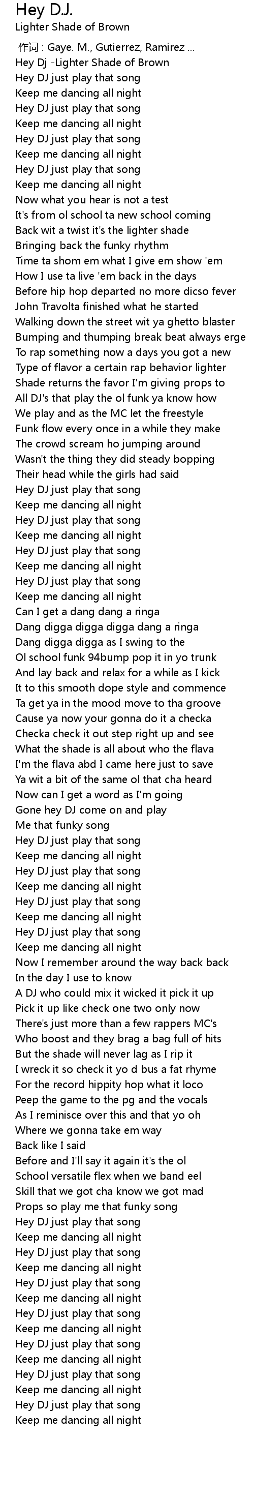 | [00:00.225] | Hey Dj -Lighter Shade of Brown |