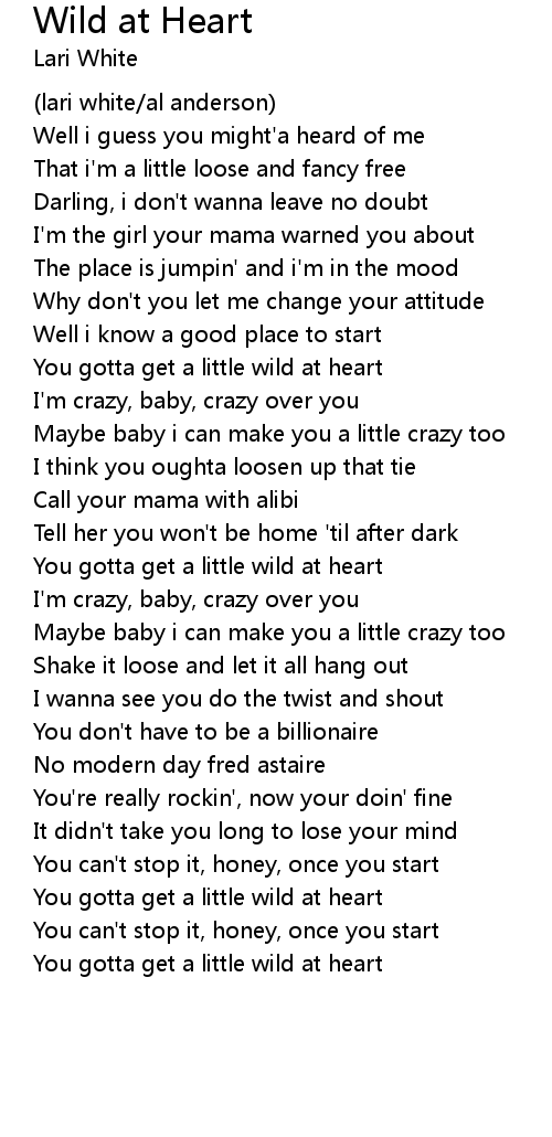 You gotta get a little wild at heart |
