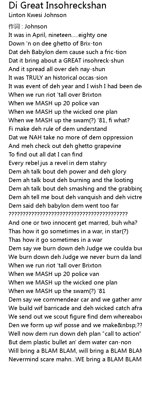 | Artist | Linton Kwesi Johnson |