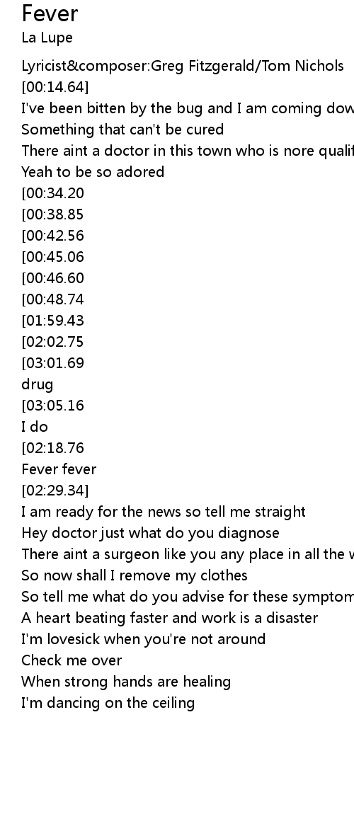 [02:53.64][01:59.43][01:42.83][00:50.73] Fever sure has got me good