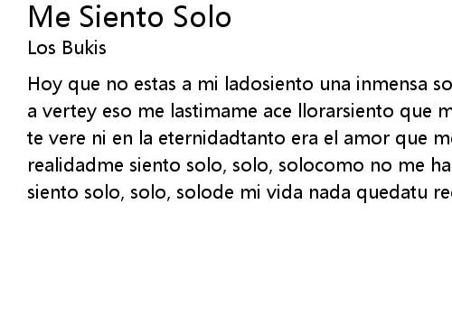 | Hoy que no estas a mi ladosiento una inmensa soledadpresiento que jamas volvere a vertey eso me lastimame ace llorarsiento que mi vidase esta acabandoy que no te vere ni en la eternidadtanto era el amor que me teniasque es dificil verla realidadme siento solo, solo, solocomo no me habia sentidocomo nunca me sentime siento solo, solo, solode mi vida nada quedatu recuerdo es mi vivir |