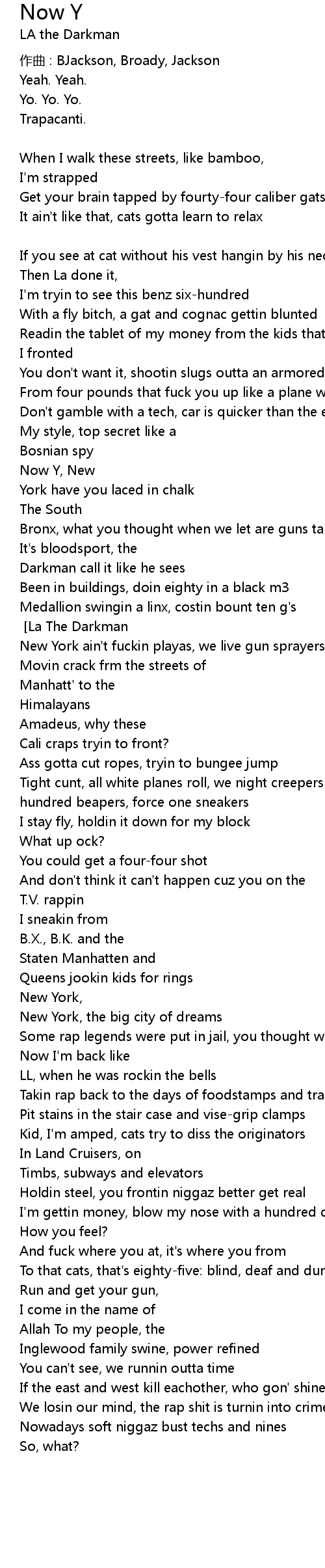 | N.Y.C., where killas bust cops at me [Chorus] [La The Darkman] | |