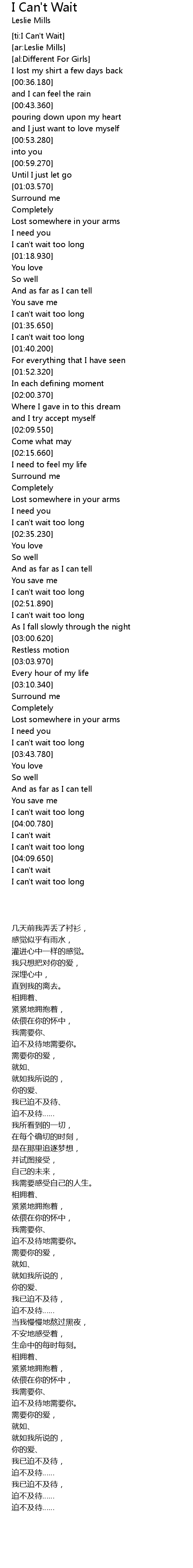 [ti:I Can't Wait] |