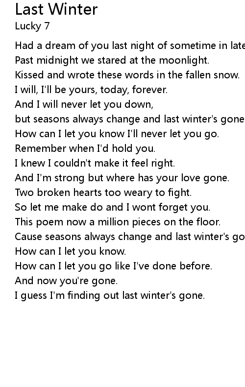 | Cause seasons always change and last winter's gone. | |