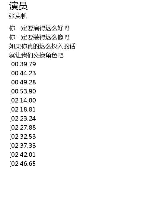 | [02:56.00][02:14.00][01:00.60] | 你是个得不到奖项的演员 |