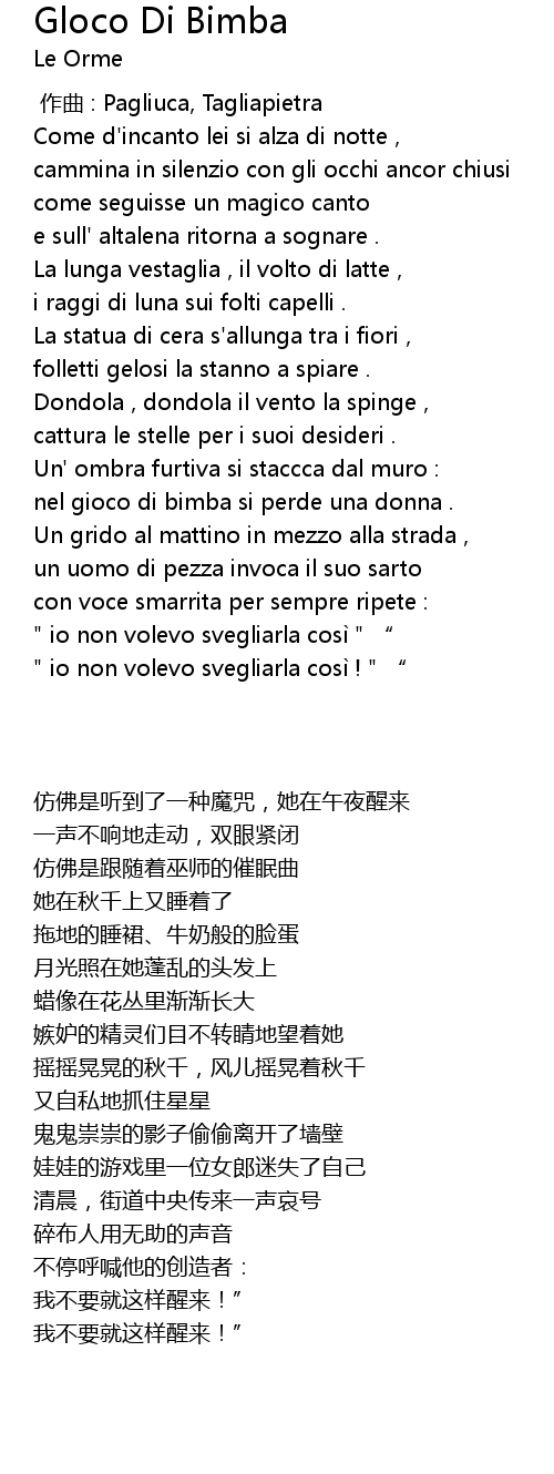 | [02:01.31] | nel gioco di bimba si perde una donna . |