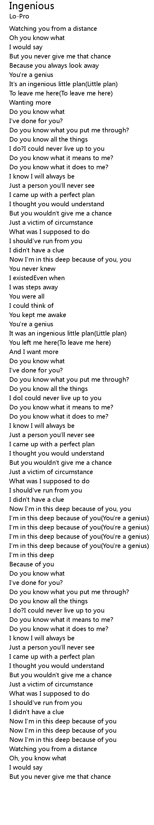 I'm in this deep because of you(You're a genius) |