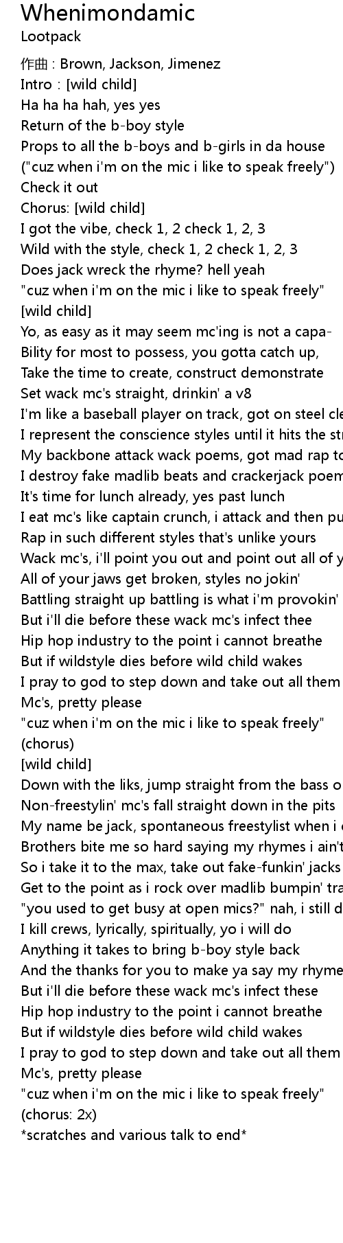 | Song | Whenimondamic |