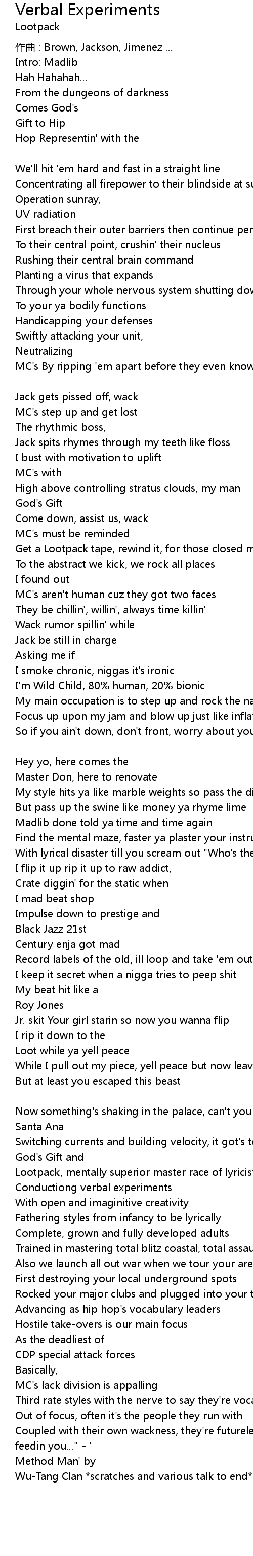 | Get a Lootpack tape, rewind it, for those closed minded | |
