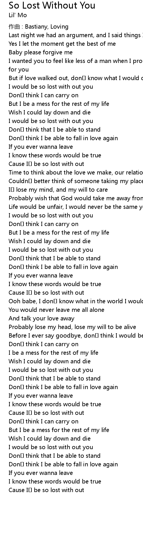 | Cause I be so lost with out | |