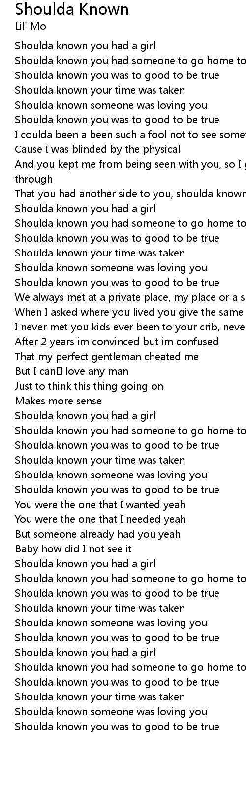 | Song | Shoulda Known |