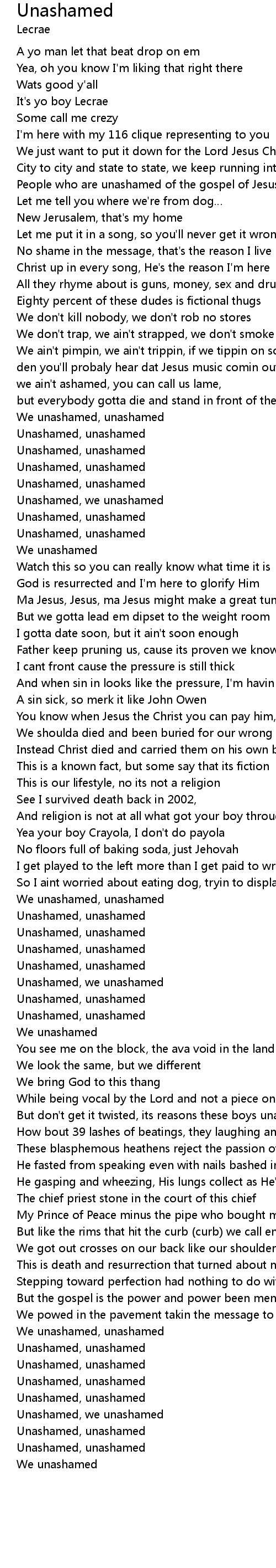 | We unashamed, unashamed | |