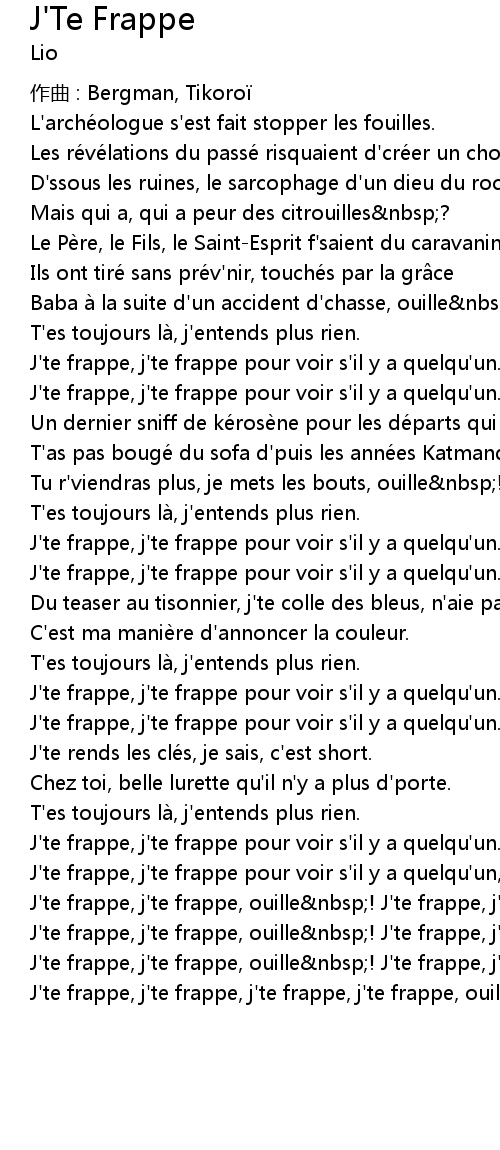 | J' te frappe, j' te frappe pour voir s' il y a quelqu' un, ouille nbsp! | |