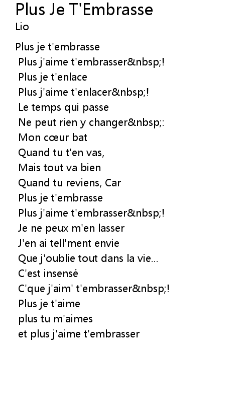 | Plus j' aime t' embrasser nbsp! | |
