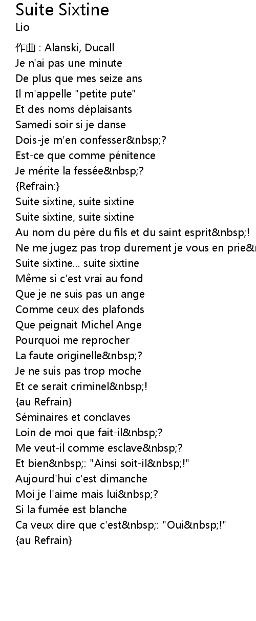 | Song | Suite Sixtine |