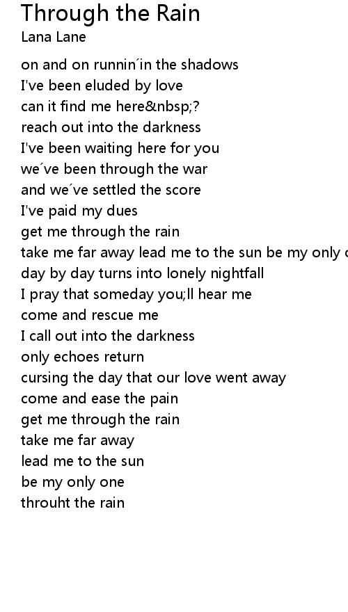 | take me far away lead me to the sun be my only one through the rain | |