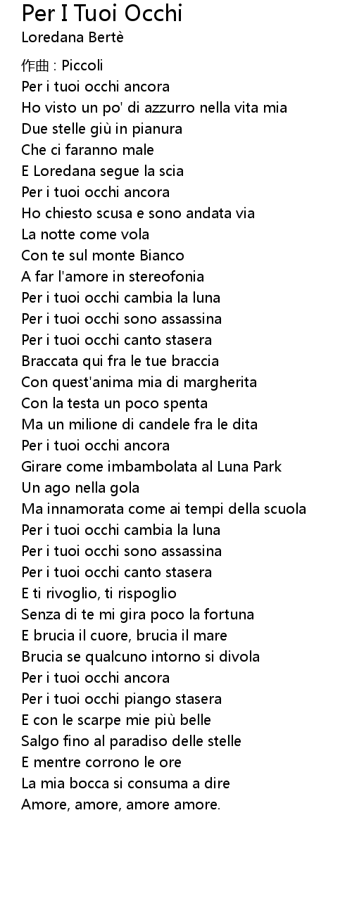| Song | Per I Tuoi Occhi |