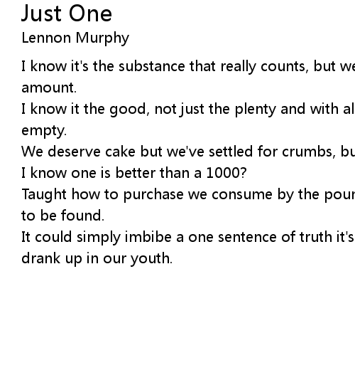 | It could simply imbibe a one sentence of truth it's outweigh all the shit we drank up in our youth. |