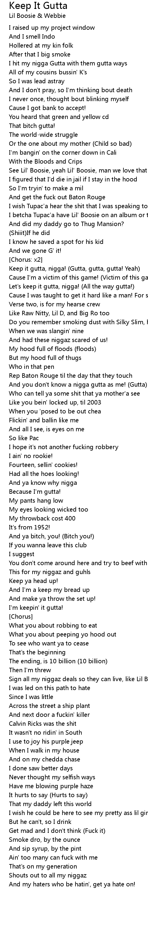 Keep it gutta, nigga! (Gutta, gutta, gutta! Yeah) |