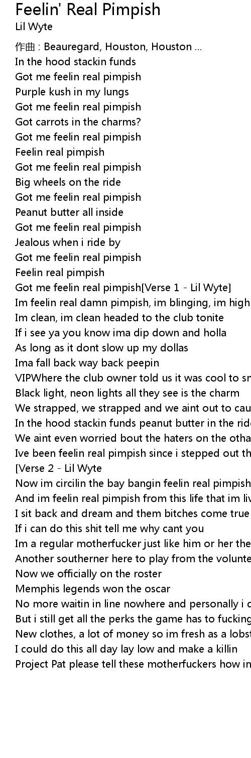 | Got me feelin real pimpish Verse 1 Lil Wyte | |