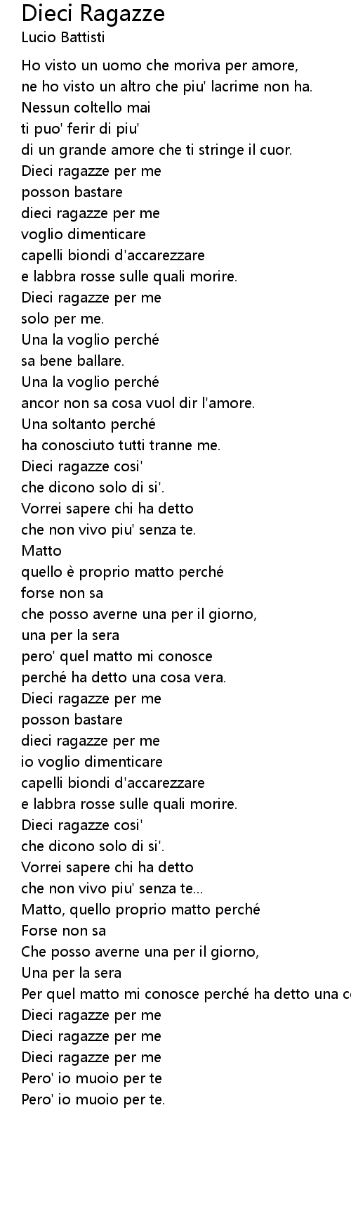 | Song | Dieci Ragazze |