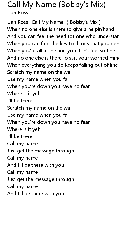 | [00:00.80] | Lian Ross Call My Name Bobby' s Mix |