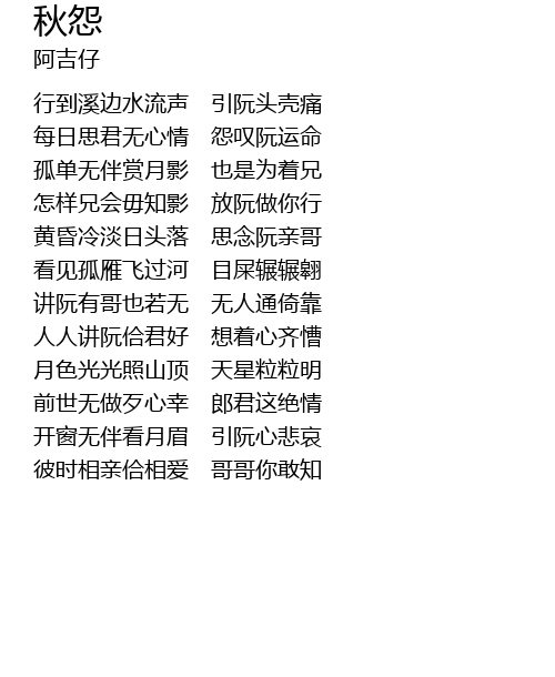 | 黄昏冷淡日头落 思念阮亲哥 | |