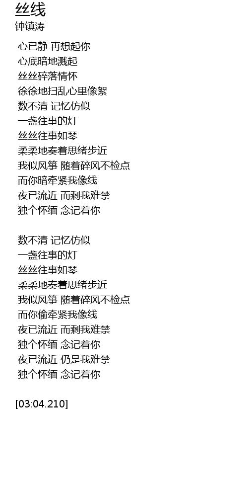 | [01:58.810] | róu róu dì zòu zhe sī xù bù jìn |