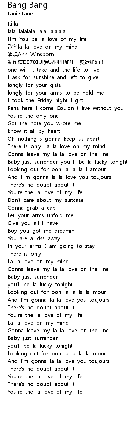 | [01:48.198] | La la love on my mind |