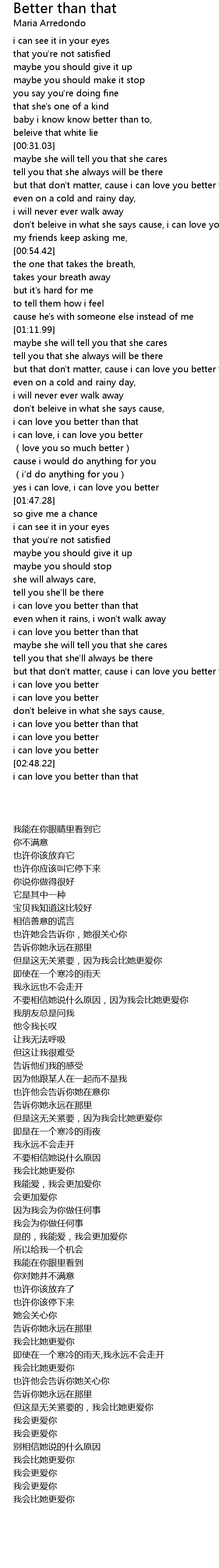 | [01:18.20] | but that don' t matter, cause i can love you better than that |