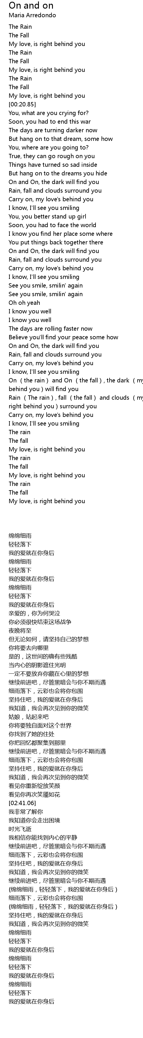 | [03:43.90] | Rain The rain, fall the fall and clouds my love is right behind you surround you |